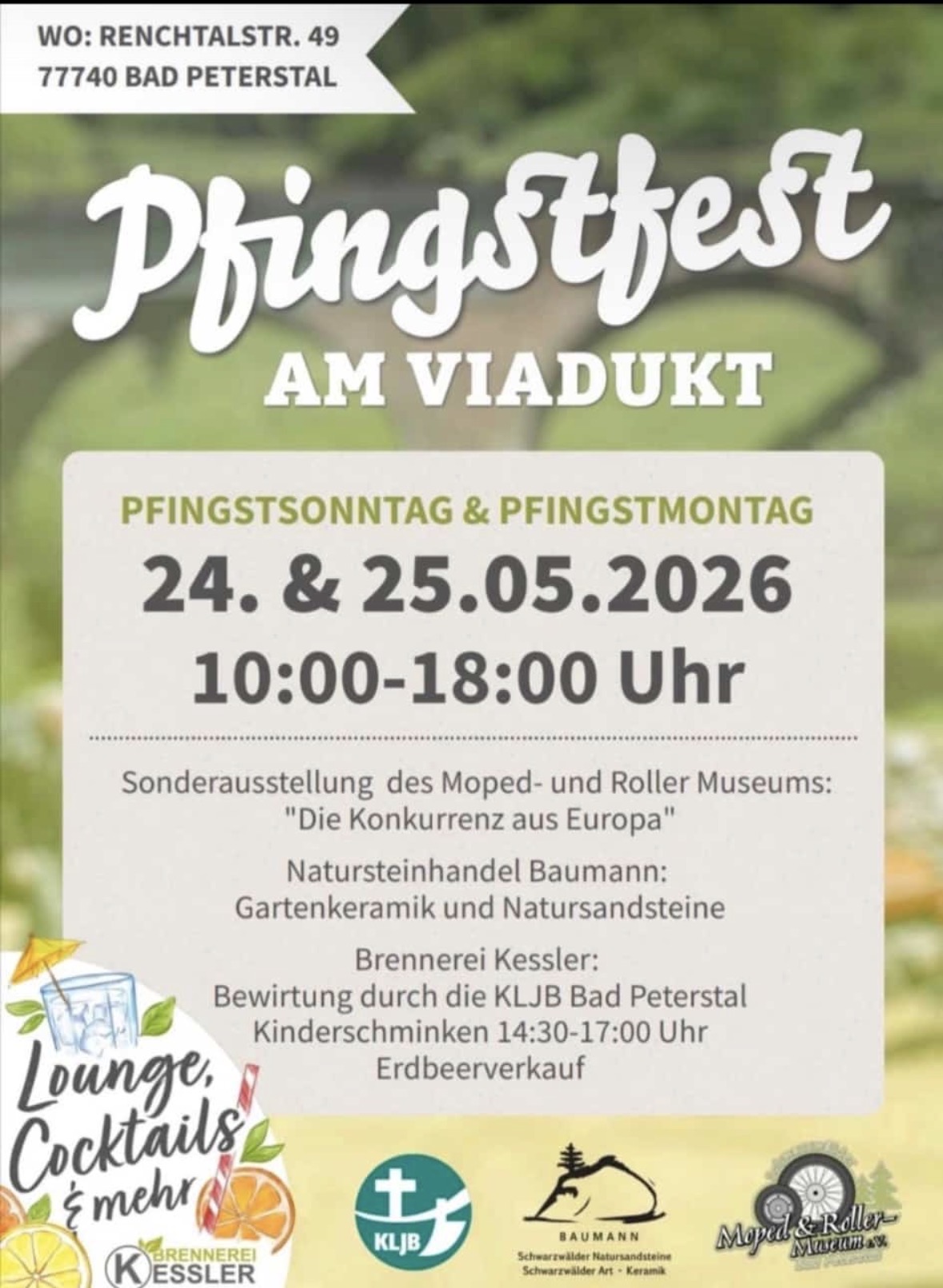 Zum Festumzug am Nachmittag ist gemeinsames antreten um 14:00 Uhr am Gesundheitszentrum „ Das Bad Peterstal“.